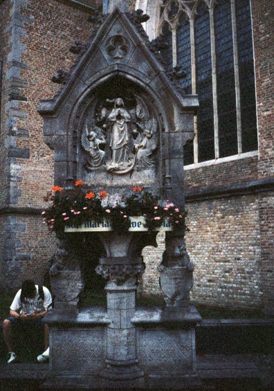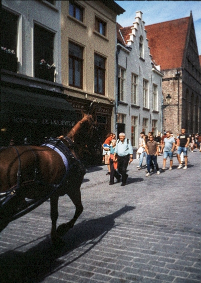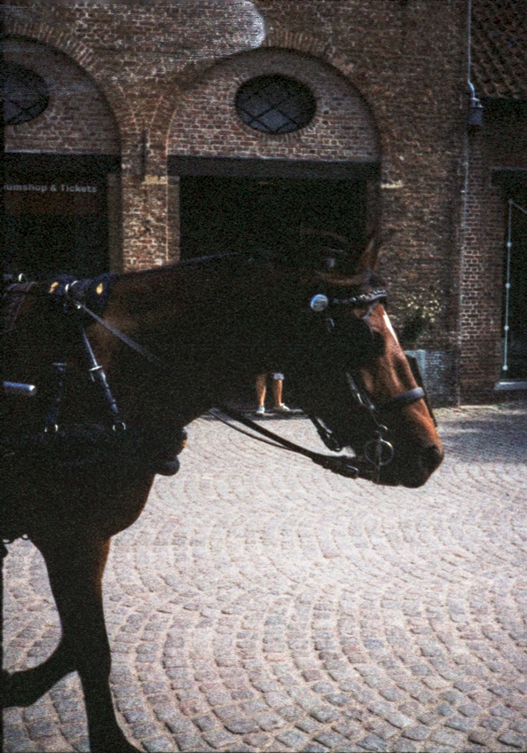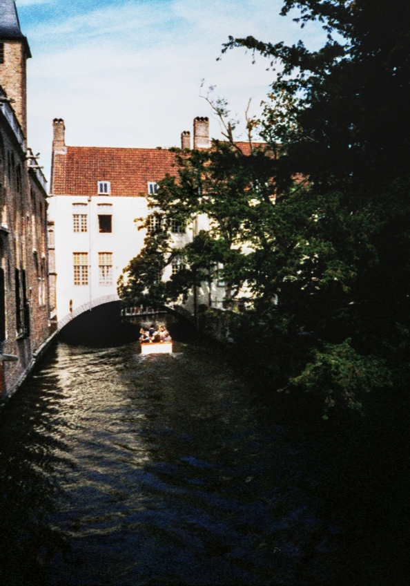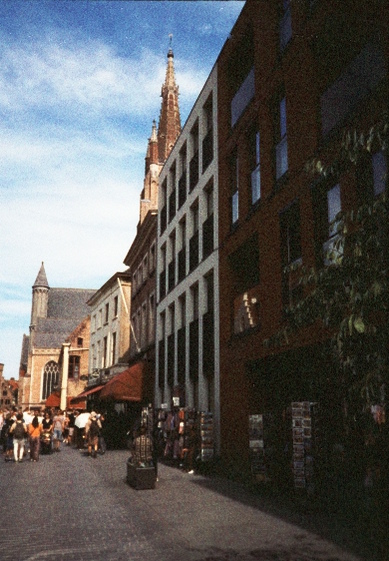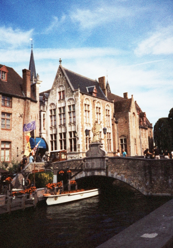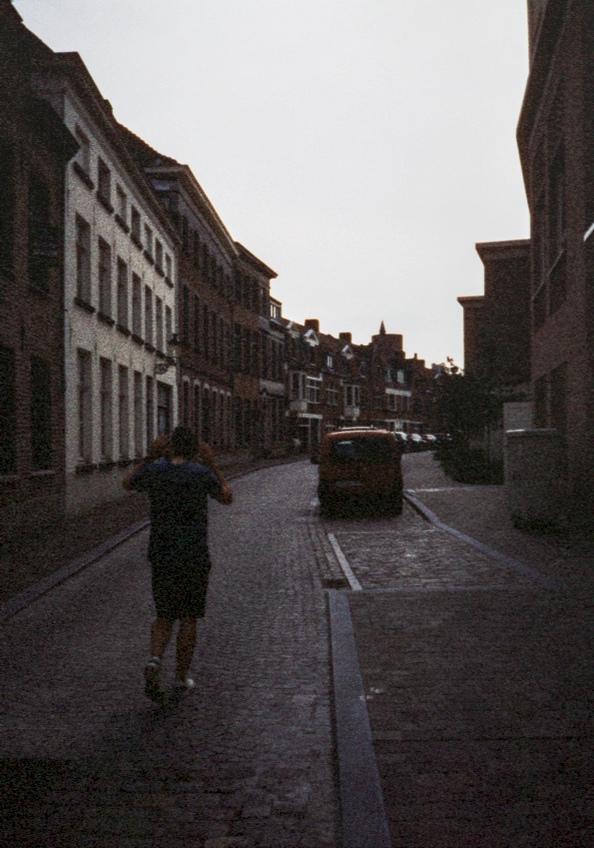 Ik herinner me niet meer welke film dit was. Hoogstwaarschijnlijk zeer vervallen Fujifilm (C200?) die niet goed bewaard is. Als gevolg zeer korrelig, weinig in de schaduw. Moest zeer hard pushen tijdens het scannen om er iets uit te halen. Gedeeltelijk genomen in Brugge en Aalst.