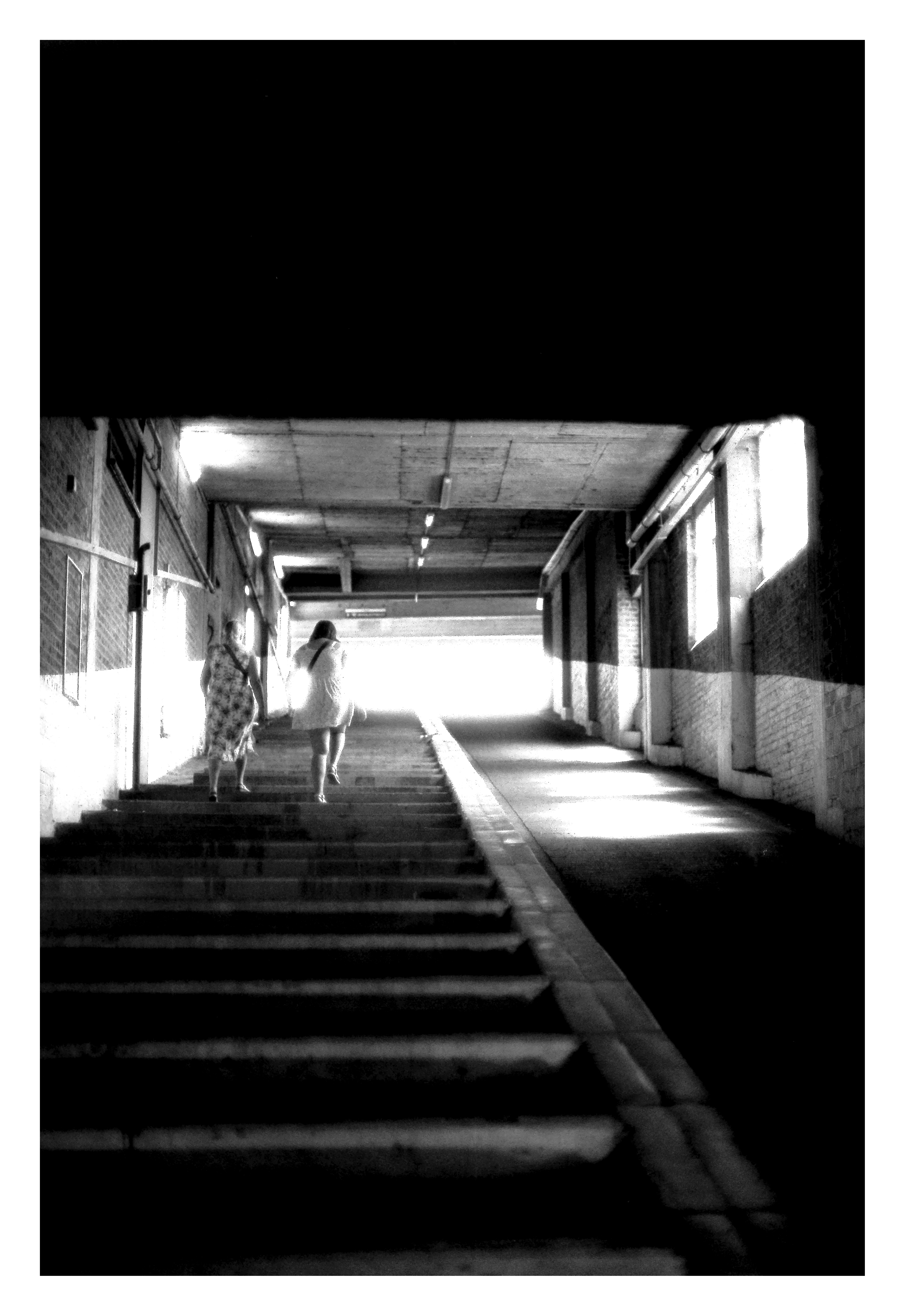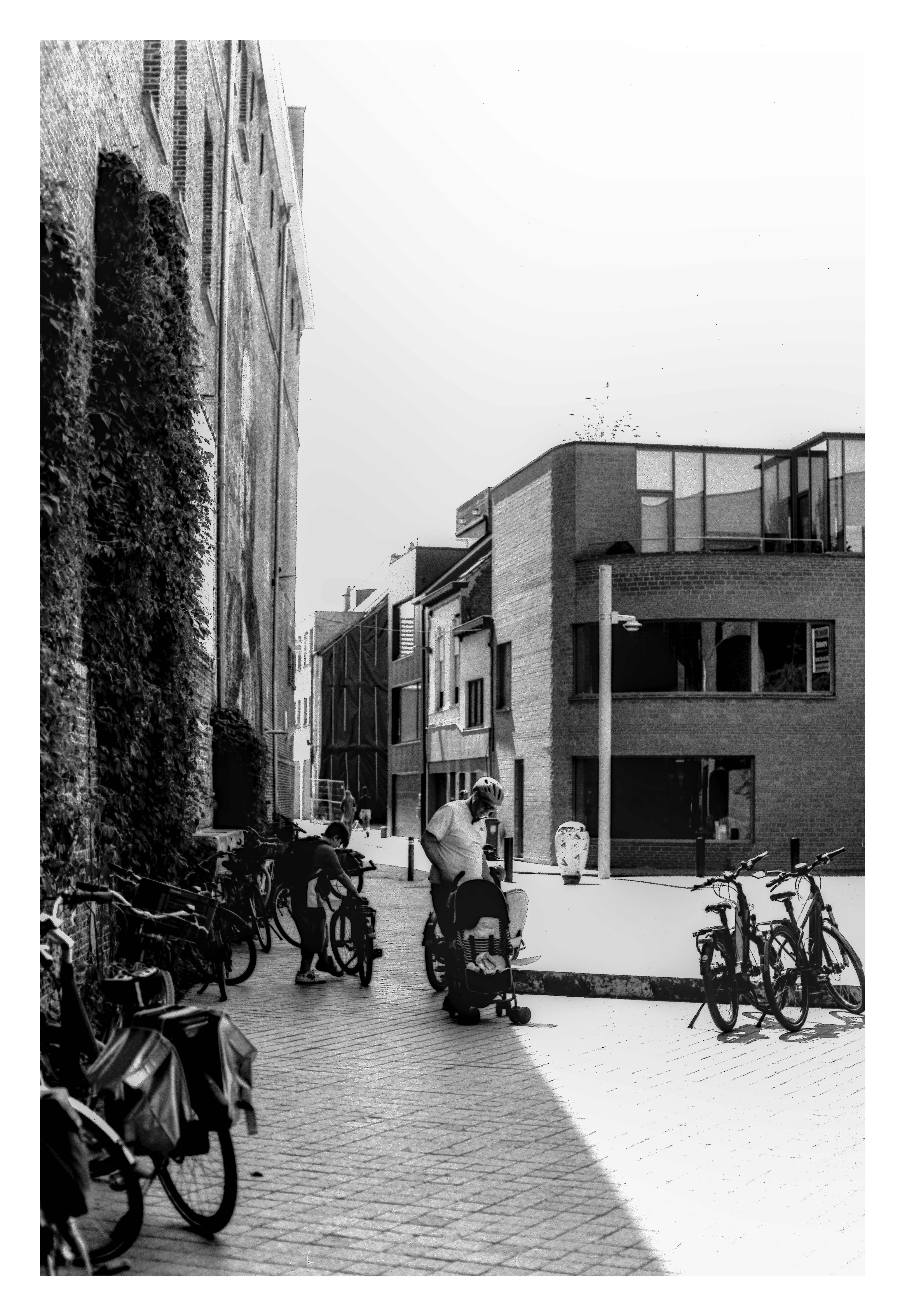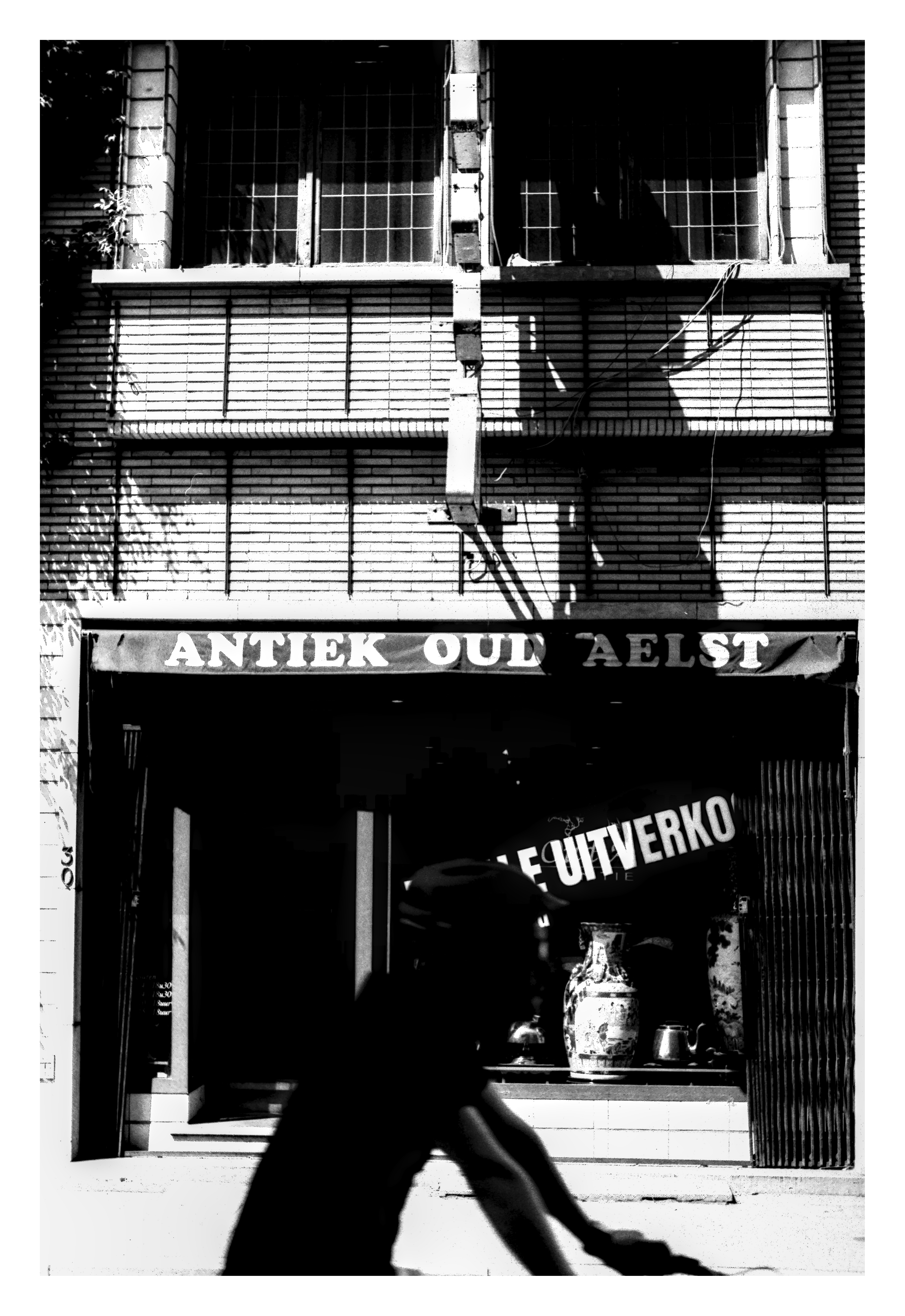 Resultaten van het praktische deel van een workshop straatfotografie Gert Swillens. Door de hitte of goddelijke interventie stopte mijn Chinon CE-3 er op het laatste moment mee. Gelukkig kreeg ik deze Canon New F-1 in mijn handen geduwd, en kon ik de workshop verder zetten met deze tank van een camera. Helaas had ik beter de instellingen van de camera moeten bekeken hebben, ik heb de hele rol op EV +4 stops genomen. Het resultaat hiervan zijn heel overexposed negatieven, sommigen ervan kon ik enkel redden door meerdere scans op verschillende helderheden te combineren tot een HDR afbeelding.